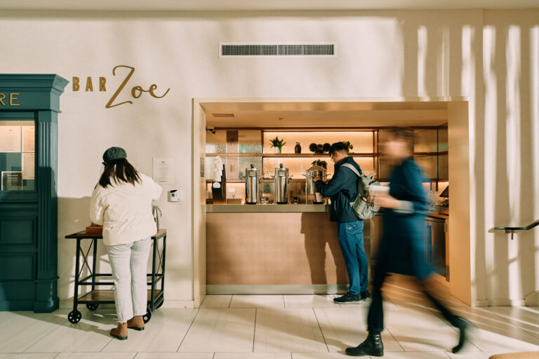 Guest pouring coffee at Bar Zoe station