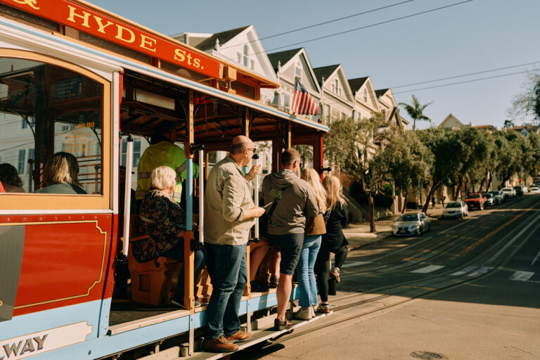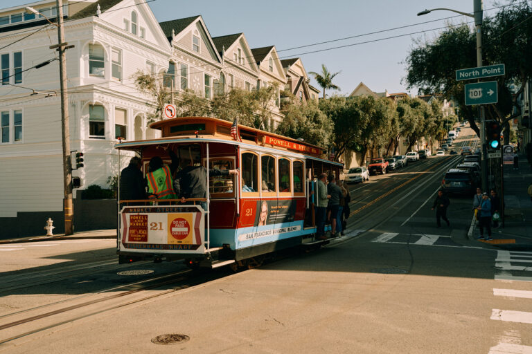 Cable car departing intersection toward Fisherman’s Wharf.